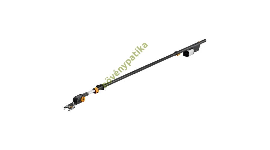 Teleszkópos nyél – 2,5–4,1 m, akár 6 m munkamagasság, a dönthető vágófej (230°) és a 360°-ban forgatható tengely biztosítja a precíz vágást minden szögből